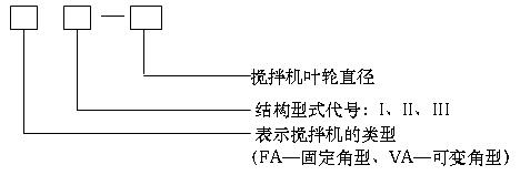 選擇固定角型、結構型式為III、葉輪直徑為Φ400的攪拌機。表示方法:FAIII-400。